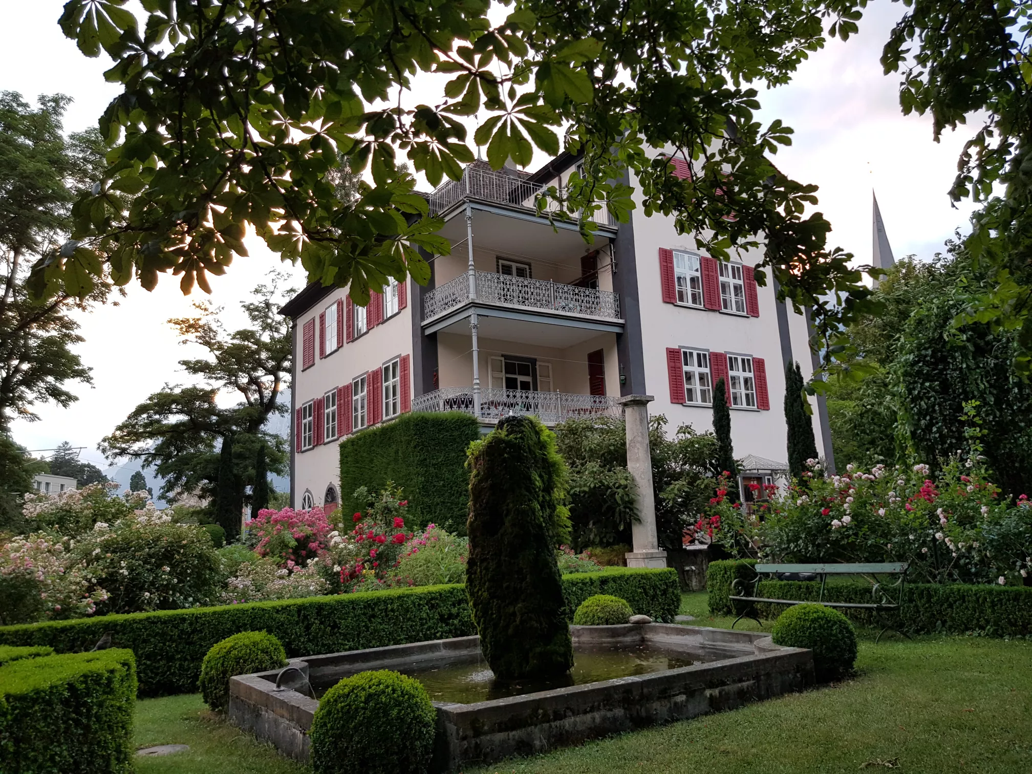 Salis setzte also die Landstrasse um einige Meter zurück auf seinen Weingarten an der Plessur und erhielt so einen kleinen Baugrund für einen Vorgarten vor dem Hauptportal des Hauses. Das Resultat ist ebenso ungewöhnlich wie bestechend: Durch die halbkreisartige Konstruktion beansprucht der Vorgarten ein Minimum an Platz und wirkt trotzdem grosszügig und einladend.